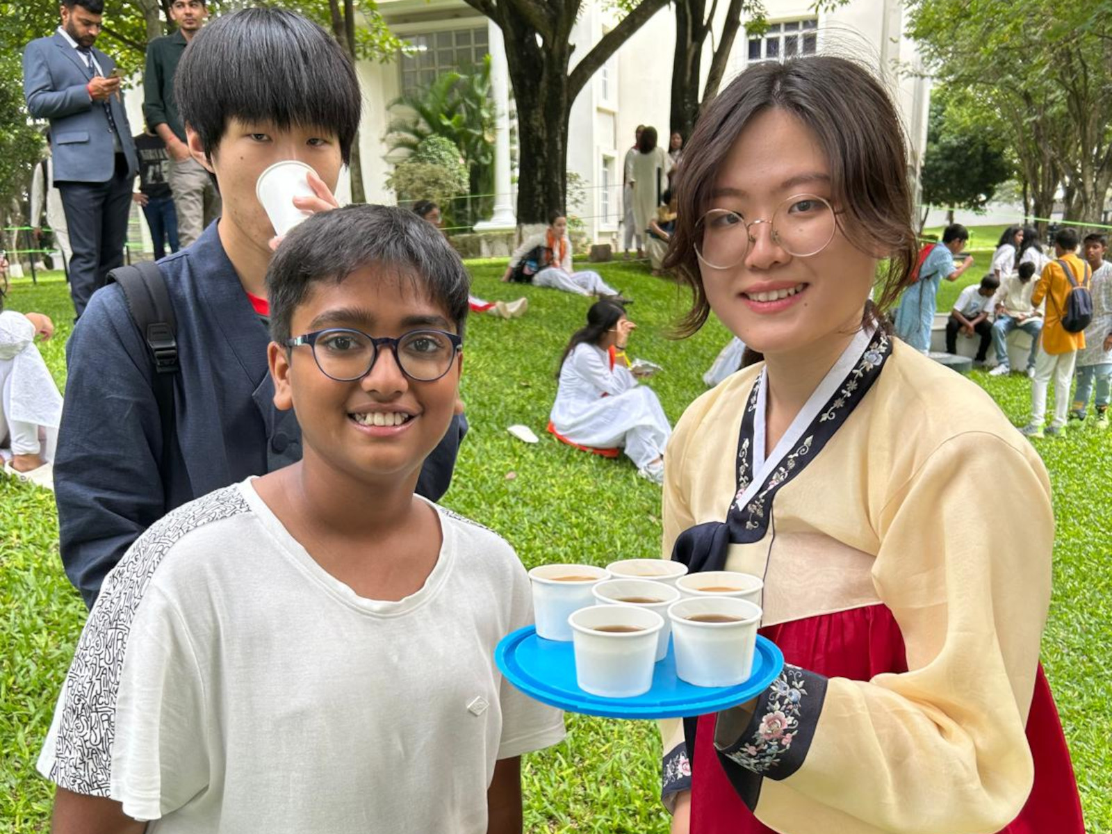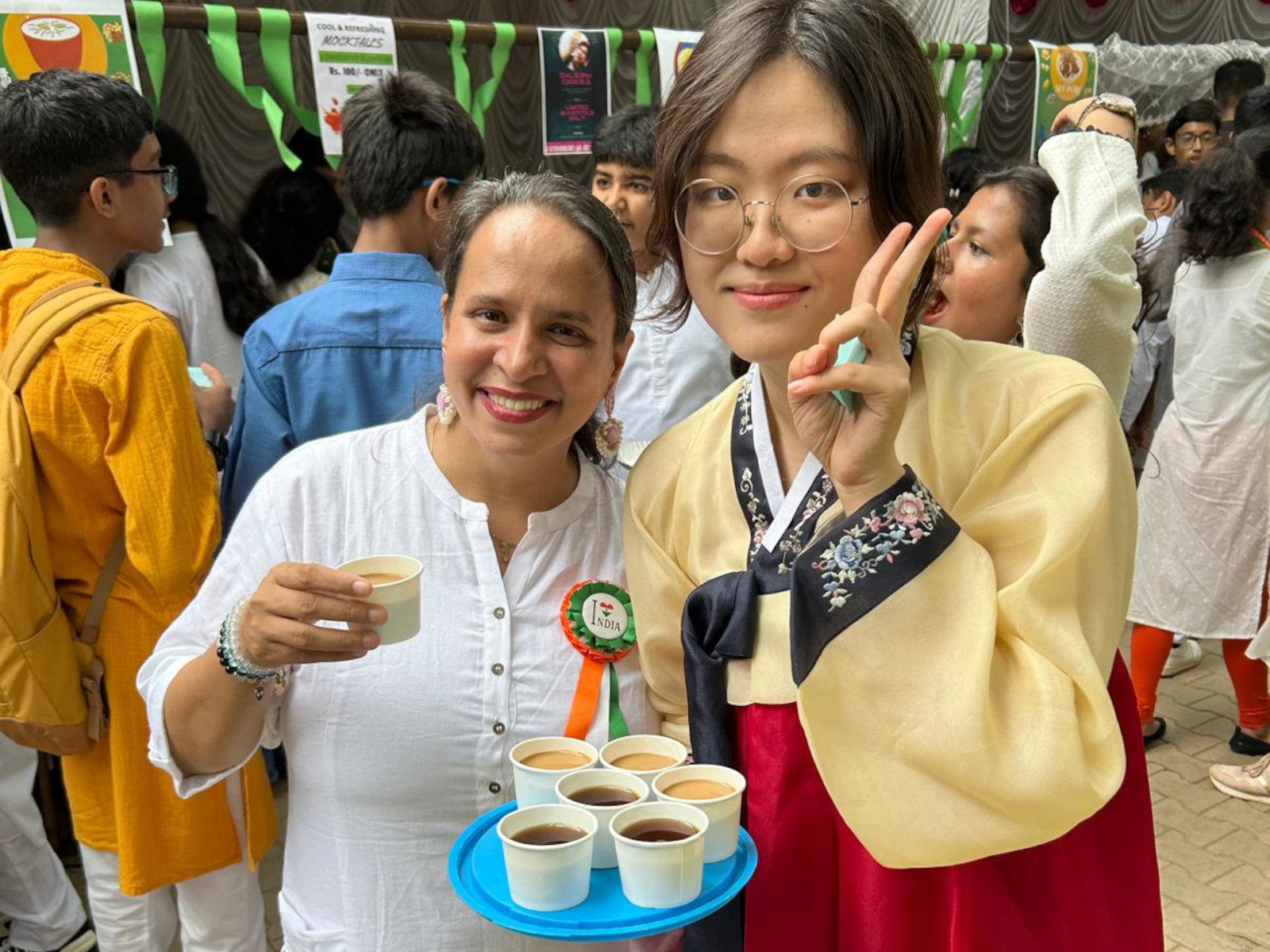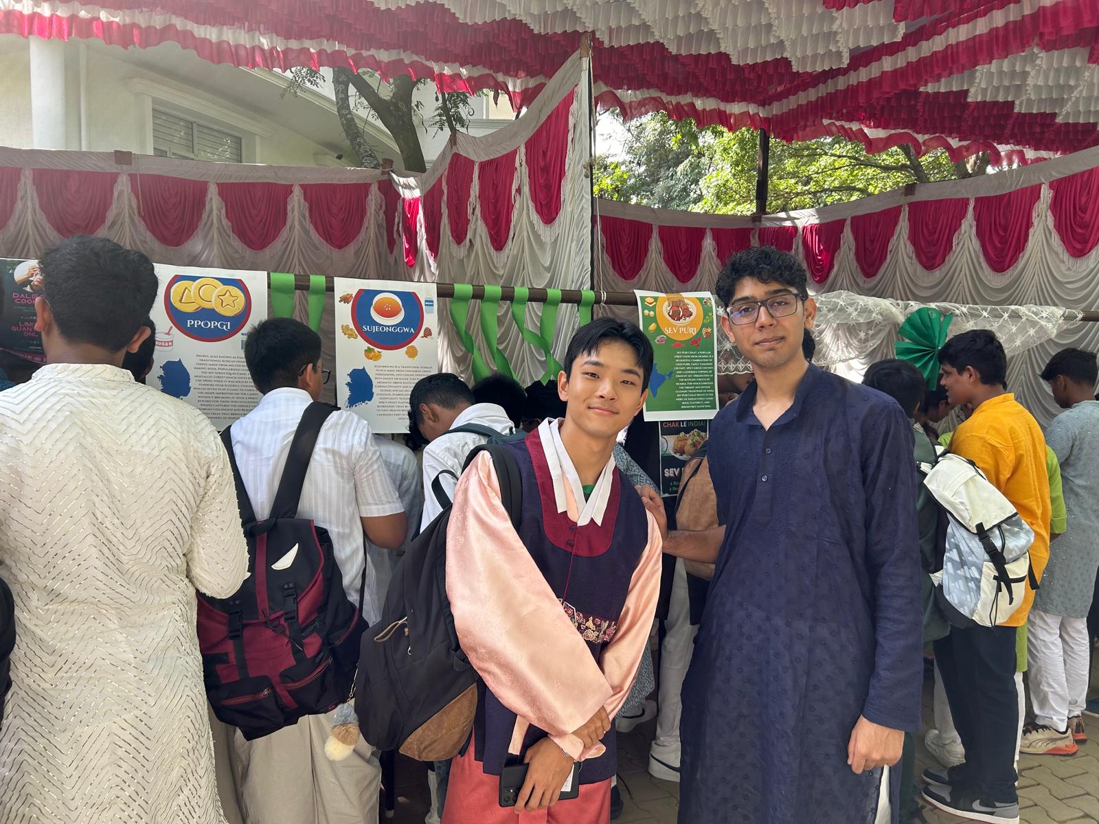Due to India and South Korea having the same independence day, we held an event in Indus International School Bangalore celebrating both cultures! During this event we served food that had semi-direct parallels with one another, selling Korean Sujeongwa and coffee alongside Indian Mango Lassi. We continued this with popular street food such as Korean dalgona and Indian bhel puri.